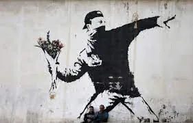 La "petite fille qui perd son ballon en forme de cœur", ou cet "homme masqué qui lance un bouquet de fleurs" (ci-dessous), vous avez forcément déjà vu voire admiré l’une des œuvres de l'artiste britannique Banksy : c’est l’exposition à ne pas rater dans l’Ouest, en ce mois de juin. Près de 300 œuvres du street-artiste sont exposées aux Ateliers des Capucins de Brest, depuis le week-end dernier (10 juin), et pour le jour d'ouverture il y avait déjà foule : près de 3 000 visiteurs, selon nos confrères de Ouest-France.