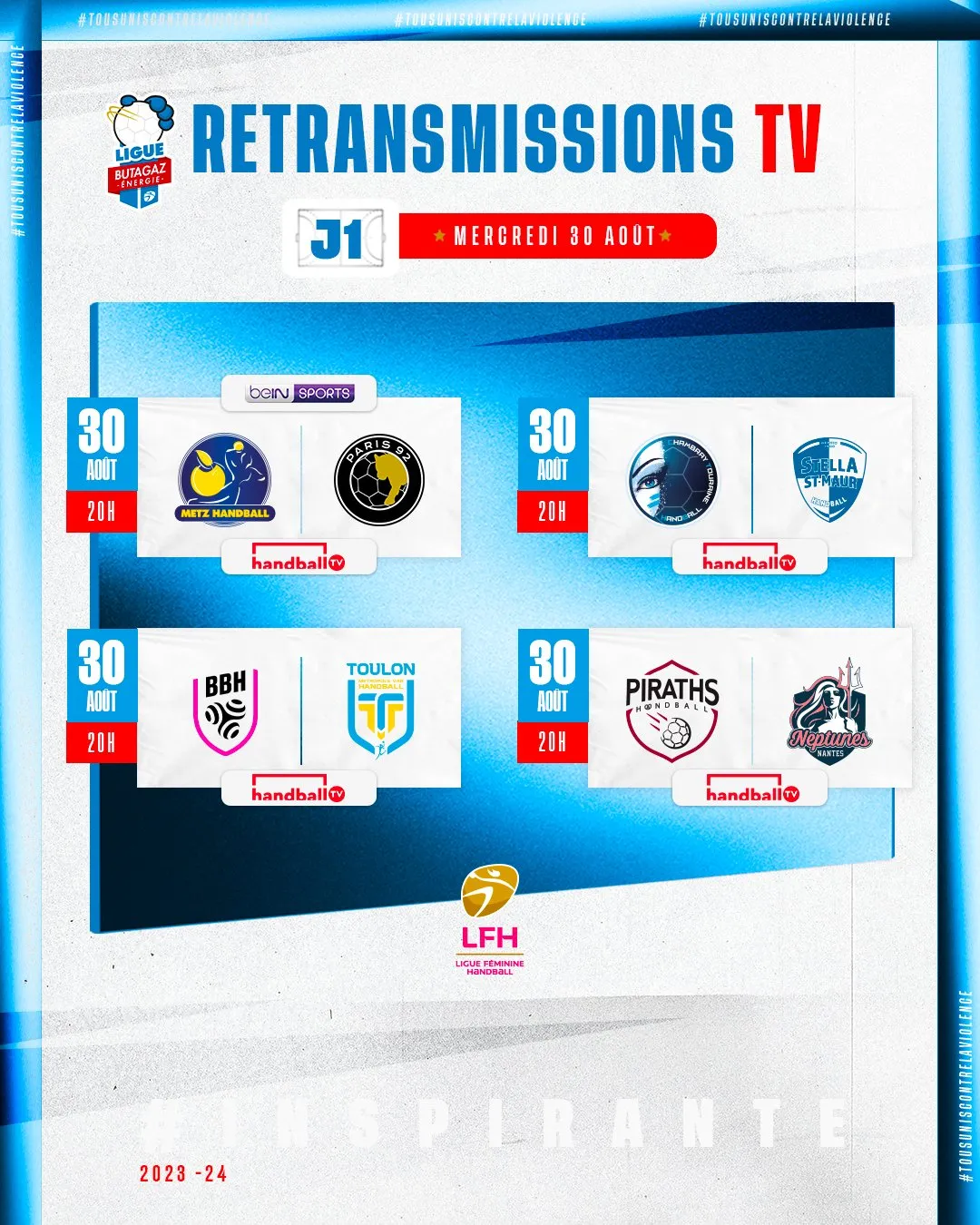 Ce mercredi, sonne aussi le coup d'envoi du championnat féminin avec la Ligue Butagaz. Les bretonnes du BBH joueront Toulon à domicile, et les Neptunes de Nantes seront en Alsace. Le club de Chambray-les-Tours accueillera Stella St-Maur.