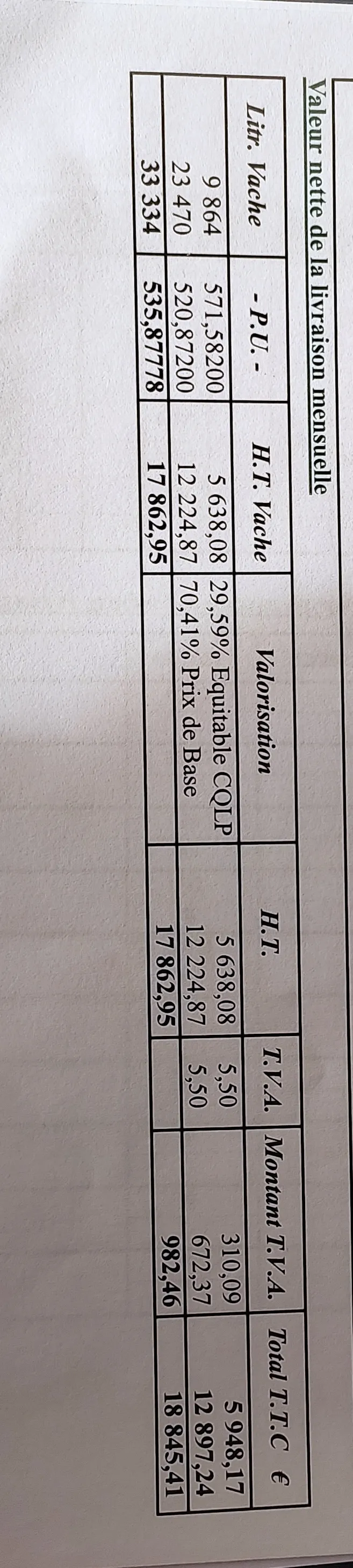 Voici la paye du lait d'Antoine Beduneau en janvier: