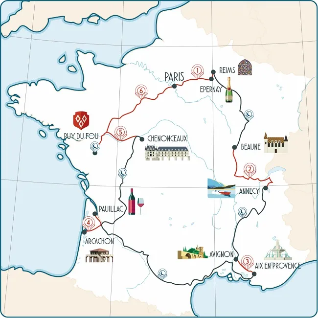 Pour ce spectacle unique, le Puy du Fou a conçu le théâtre le plus extravagant et le plus insolite jamais inventé, un authentique train Belle Époque grandeur nature, qui va embarquer ses voyageurs pour un spectacle de 4000 km, à la découverte des splendeurs et des merveilles qui font la richesse et le charme de la France. À l’été 2023, le Puy du Fou s’apprête ainsi à faire vivre à trente voyageurs par semaine le plus spectaculaire et le plus poétique des voyages dans l’espace et dans le temps, dans la géographie et dans l’Histoire (...) De la Champagne à la Bourgogne, du Lac d’Annecy au Bassin d’Arcachon, du Palais des Papes d’Avignon aux Châteaux de la Loire, chaque escale est l’occasion de rencontrer des grandes figures et des personnages historiques, et de vivre des émotions uniques, avec en point d’orgue du voyage, le Puy du Fou.