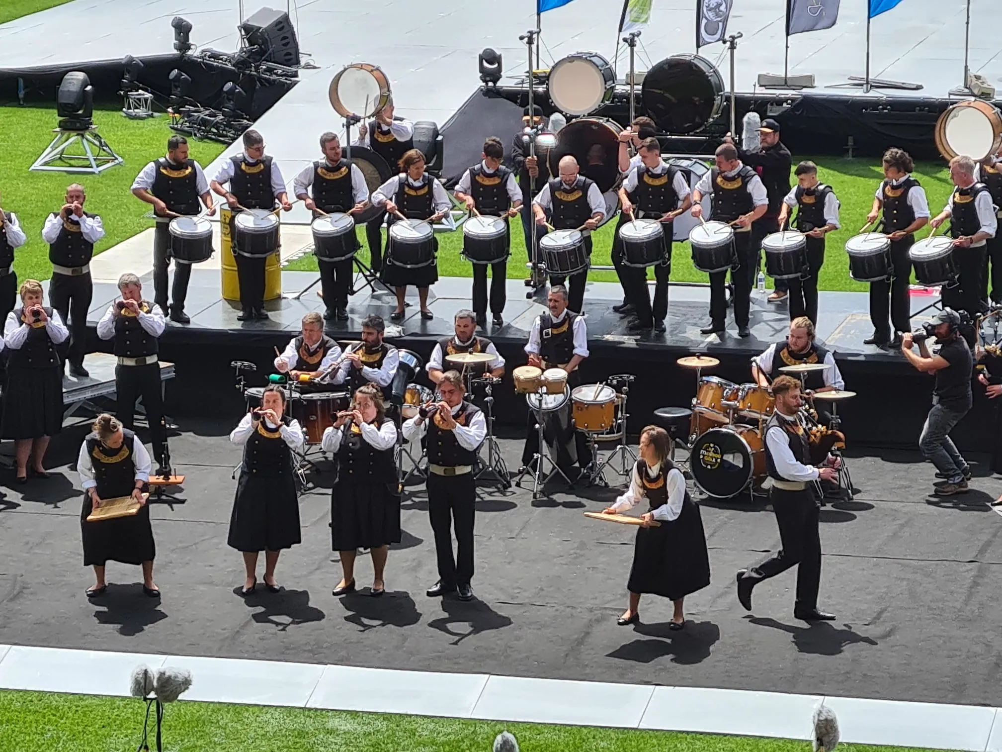 Près de 800 sonneurs foulent la scène installée au centre du Stade du Moustoir de Lorient ce samedi après-midi devant le jury. Les festivaliers venus nombreux, encouragent et découvrent les suites musicales interprétées par les 16 meilleurs bagadoù français tout l'après-midi. L'année dernière, le bagad Kemper (Quimper) a remporté le championnat de première catégorie pendant le Festival Interceltique de Lorient en août 2022.