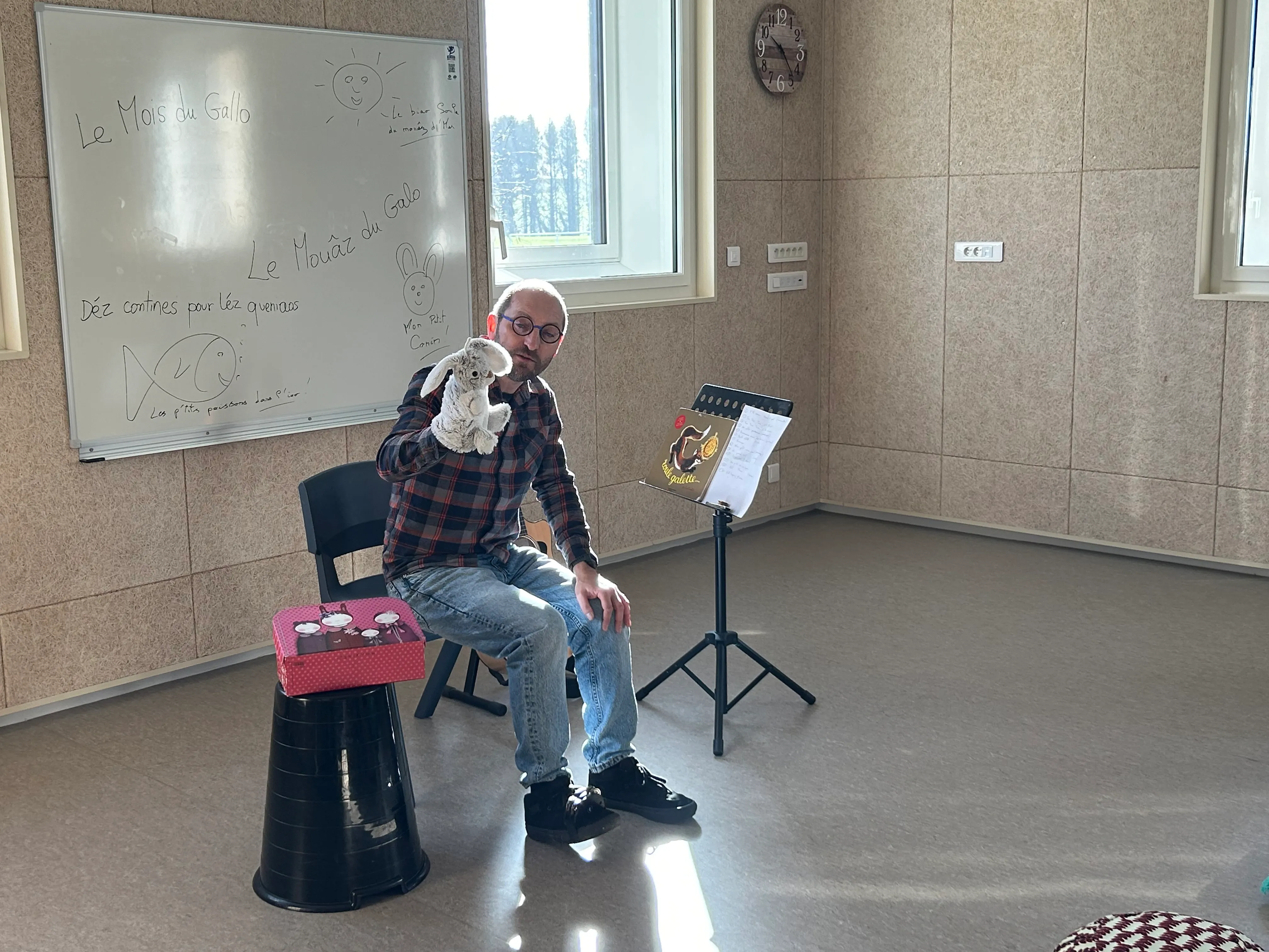 David Martin-Renard lors d'un atelier de comptines en Gallo