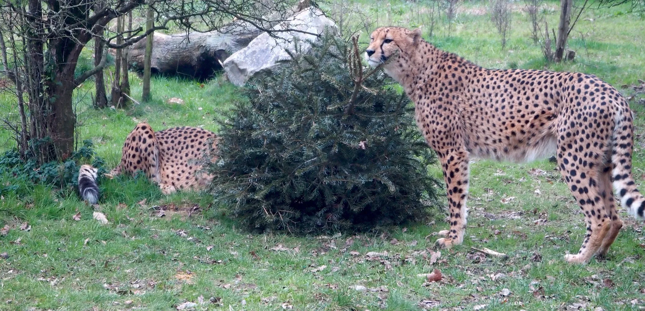 Un recyclage aux fonctions multiples, pour Clémentine Amar (chargée de communication), avec Armand Douillard. "Cela nous permet de proposer aux animaux différents enrichissements. Selon les animaux, il y en a qui vont les manger, d'autres vont jouer avec l'arbre, ils vont utiliser tout leur sens en fait pour découvrir des conifères ! On en a distribué à différents fauves, en randonnée aux bisons qui adorent ça, ou par exemple à nos chèvres qui vont les dévorer également...