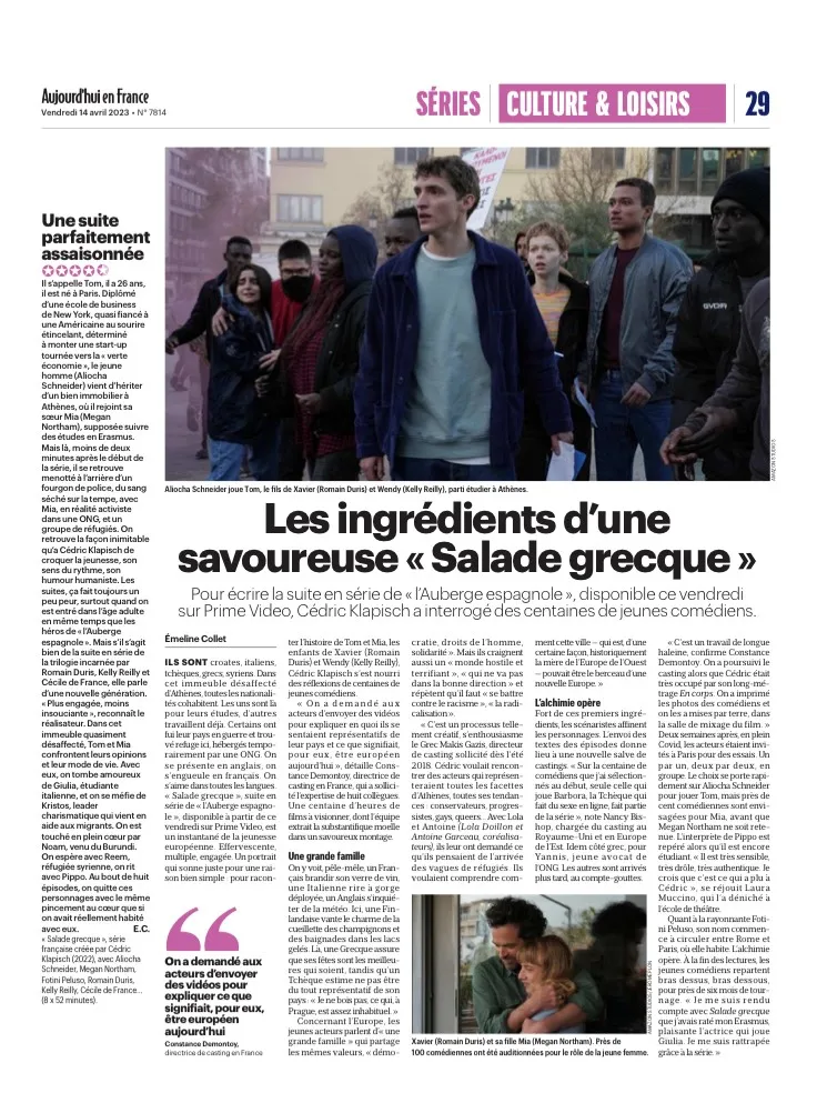 Cedric Klapisch s'est confié au micro de Lucas Declercq : "Dans "Casse tête chinois", on voyait deux enfants qui avaient cinq et neuf ans et là, ils ont 22 et 26 ans. C'est à eux de partir et ils ne partent pas à Barcelone, mais à Athènes, qui est une autre réalité européenne d'aujourd'hui. C'est une façon de faire un portrait de la jeunesse européenne, 20 ans après celle de "L'Auberge espagnole". On voit que l'Europe a bien changé et elle continue de changer ces jours-ci...